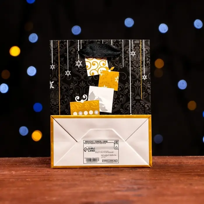 Стильный новогодний пакет с ламинацией используют как упаковку для подарка. Благодаря своему оригинальному дизайну и привлекательному внешнему виду он создаст праздничное настроение получателю и не оставит его равнодушным.