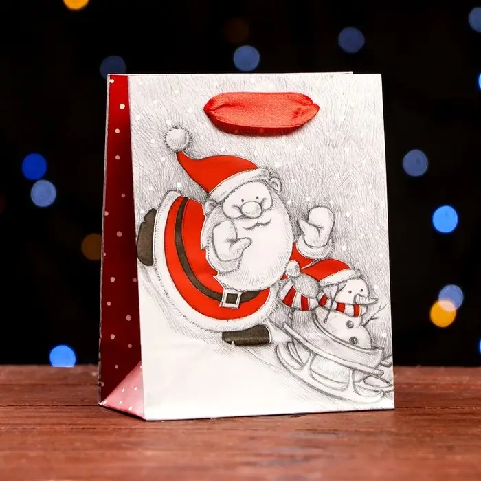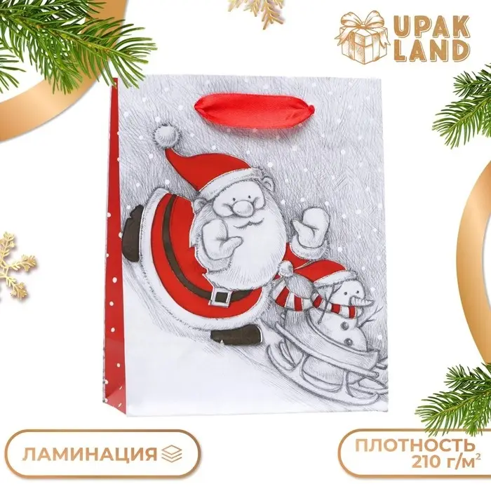 Стильный новогодний пакет с ламинацией используют как упаковку для подарка. Благодаря своему оригинальному дизайну и привлекательному внешнему виду он создаст праздничное настроение получателю и не оставит его равнодушным.