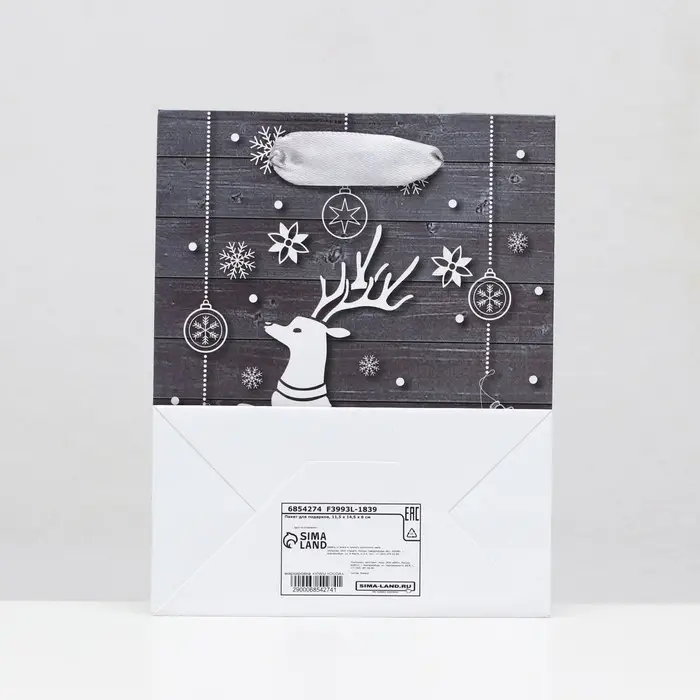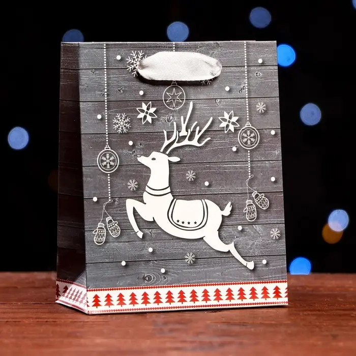 Пакет ламинированный «Белый олень» 11.5×14.5×6 см