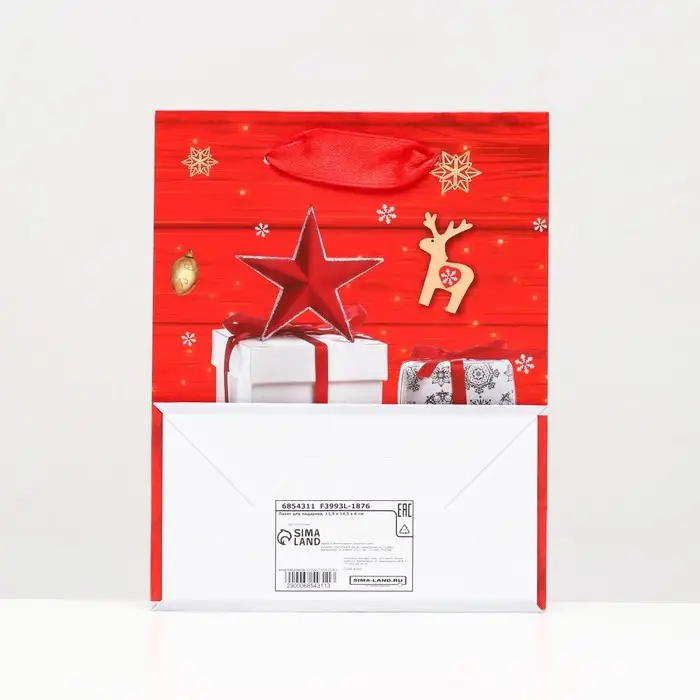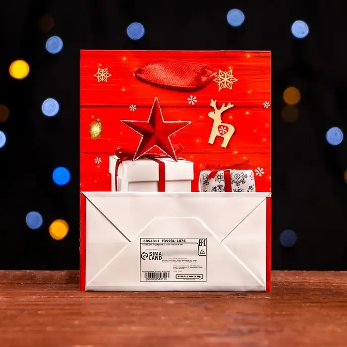 Стильный новогодний пакет с ламинацией используют как упаковку для подарка. Благодаря своему оригинальному дизайну и привлекательному внешнему виду он создаст праздничное настроение получателю и не оставит его равнодушным.