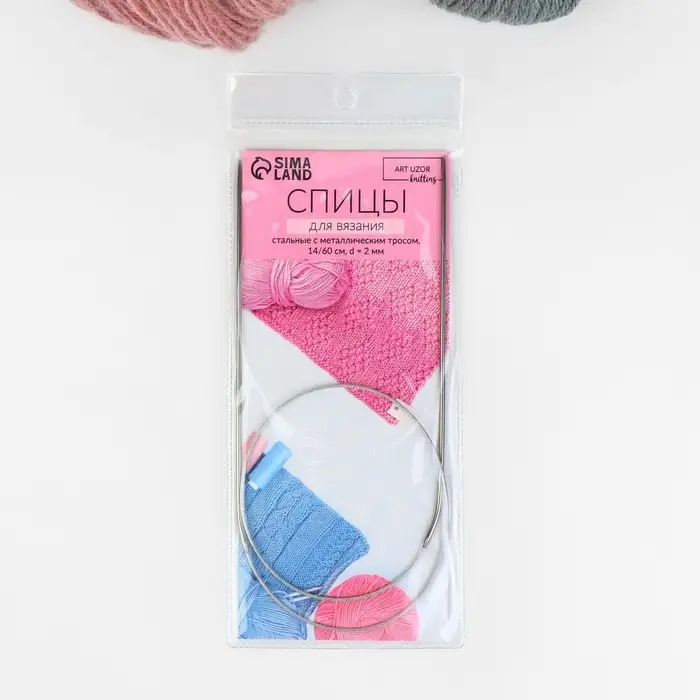 Спицы круговые, для вязания, с металлическим тросом, d=2 мм, 14/60 см