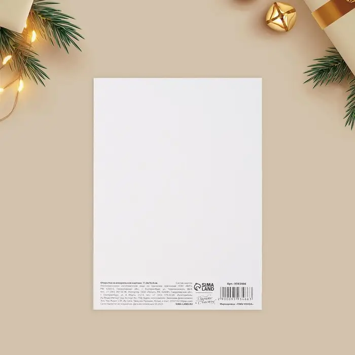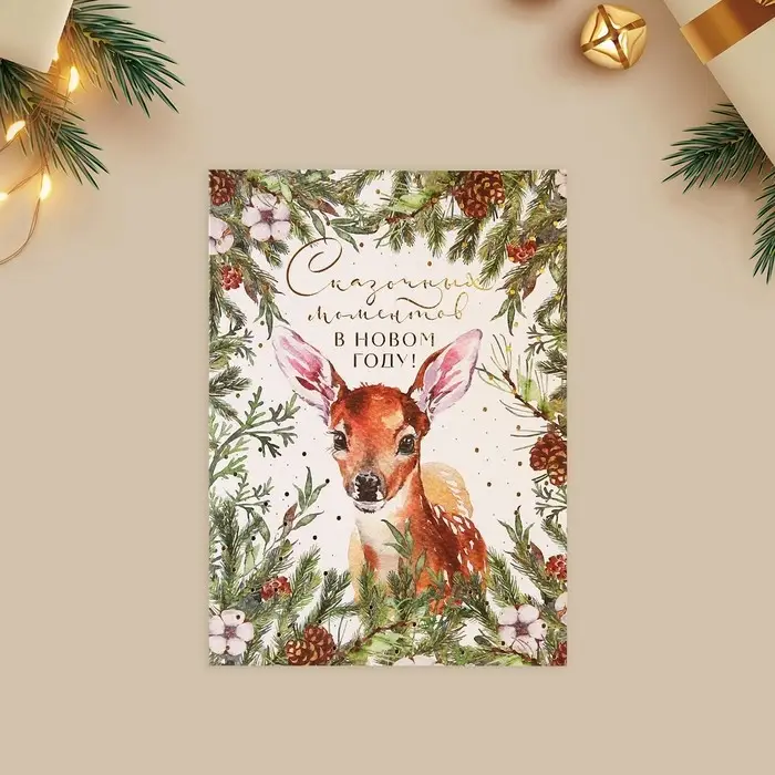 Открытка с новым годом на акварельном картоне «Сказочных моментов», тиснение, 11.8×16.4 см