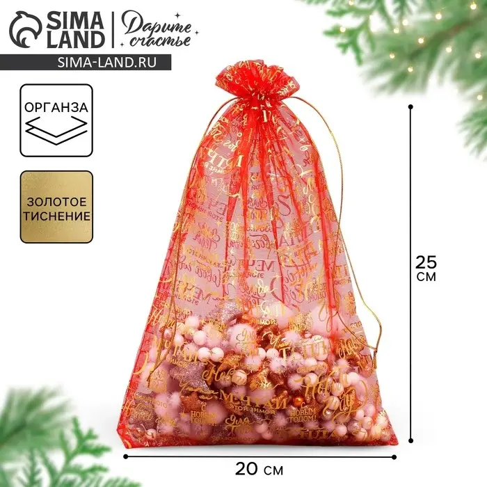 Мешочек подарочный органза «Уюта и тепла», 20 х 30 см +/- 1.5 см