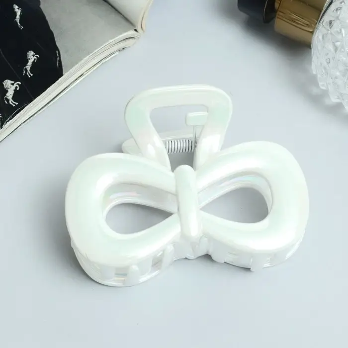Крабик для волос «Лунара», бант, 8 см, белый