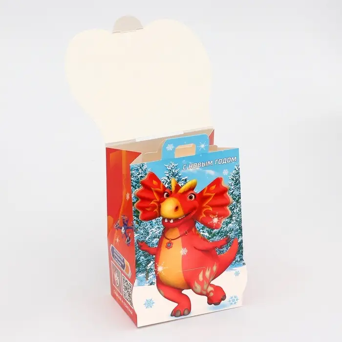Коробка выполнена из качественных материалов, которые обеспечивают сохранность содержимого. Она имеет яркий и красочный дизайн, который отражает атмосферу Нового года.