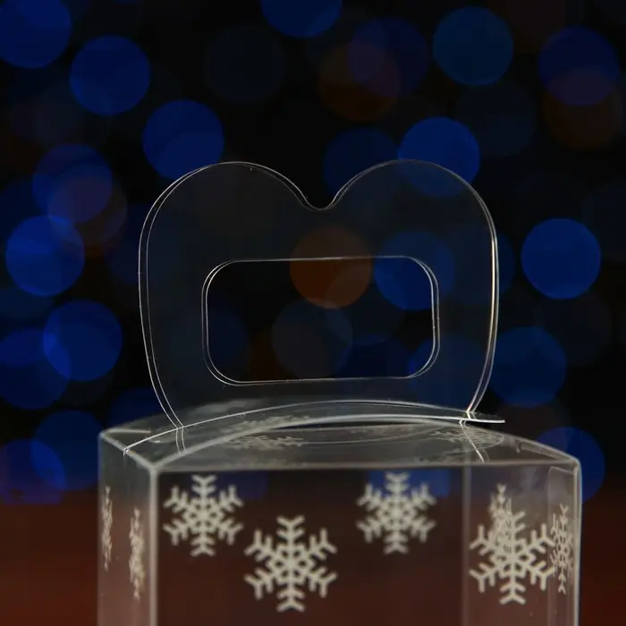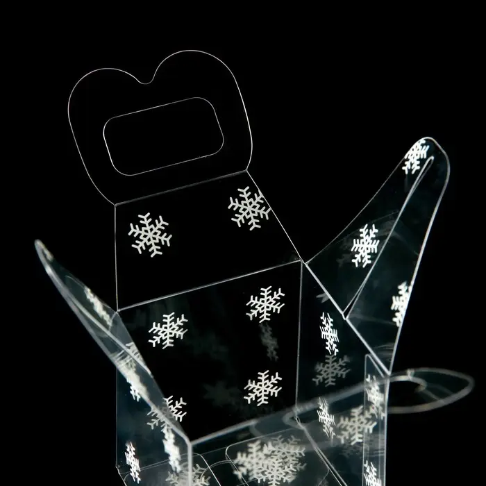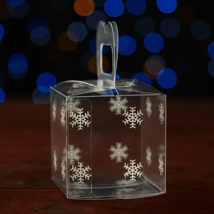 Коробка подарочная новогодняя складная ПВХ «Снежинки» 5×5×5 см