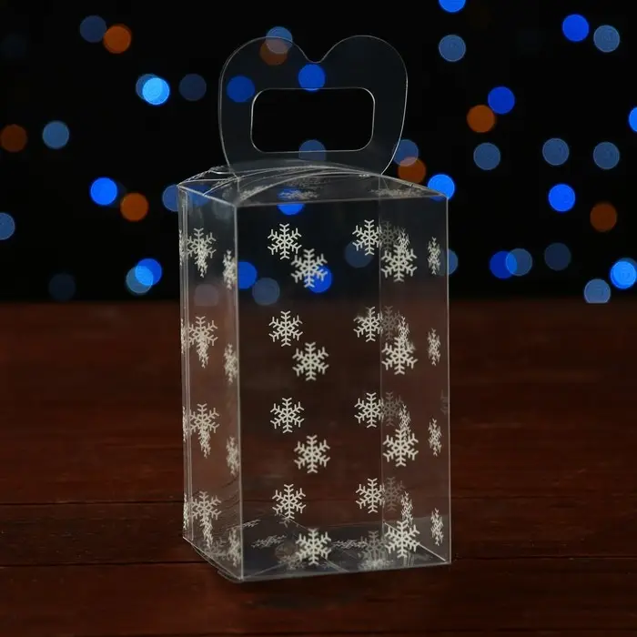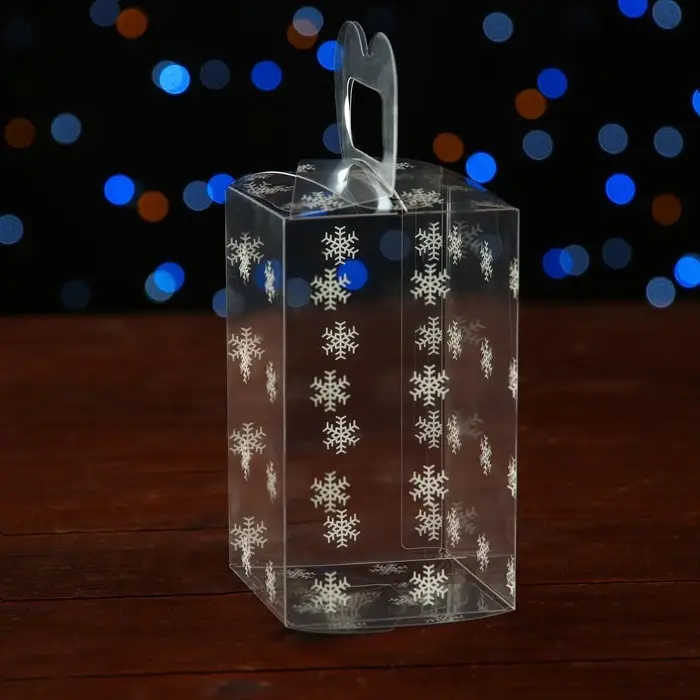 Коробка подарочная новогодняя складная ПВХ «Снежинки» 12×7×7 см