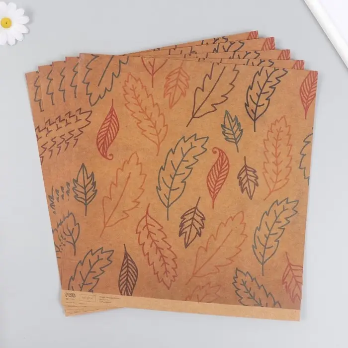 Бумага для скрапбукинга крафт "Листья" плотность 180 гр 30,5х32 см
