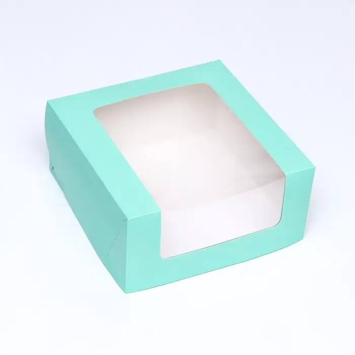 Кондитерская упаковка с окном, мятная, 21×21×10 см