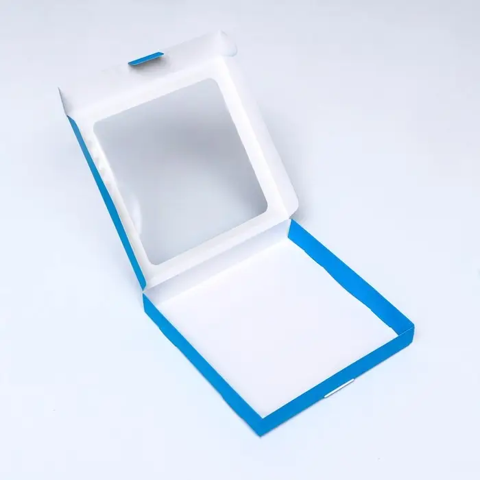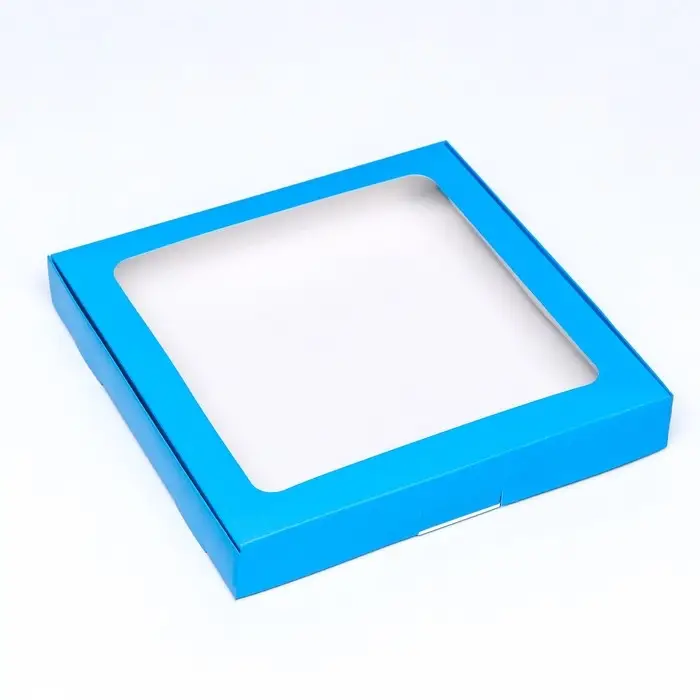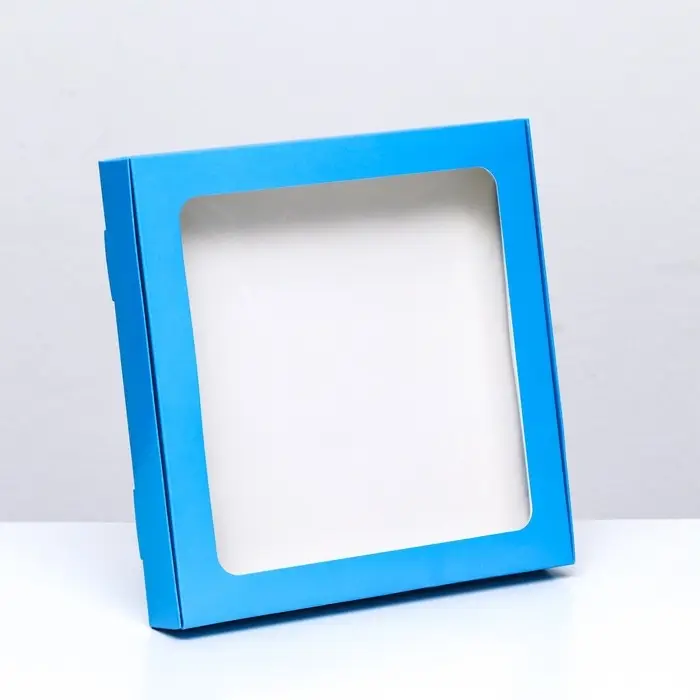 Коробка самосборная с окном синяя, 21×21×3 см