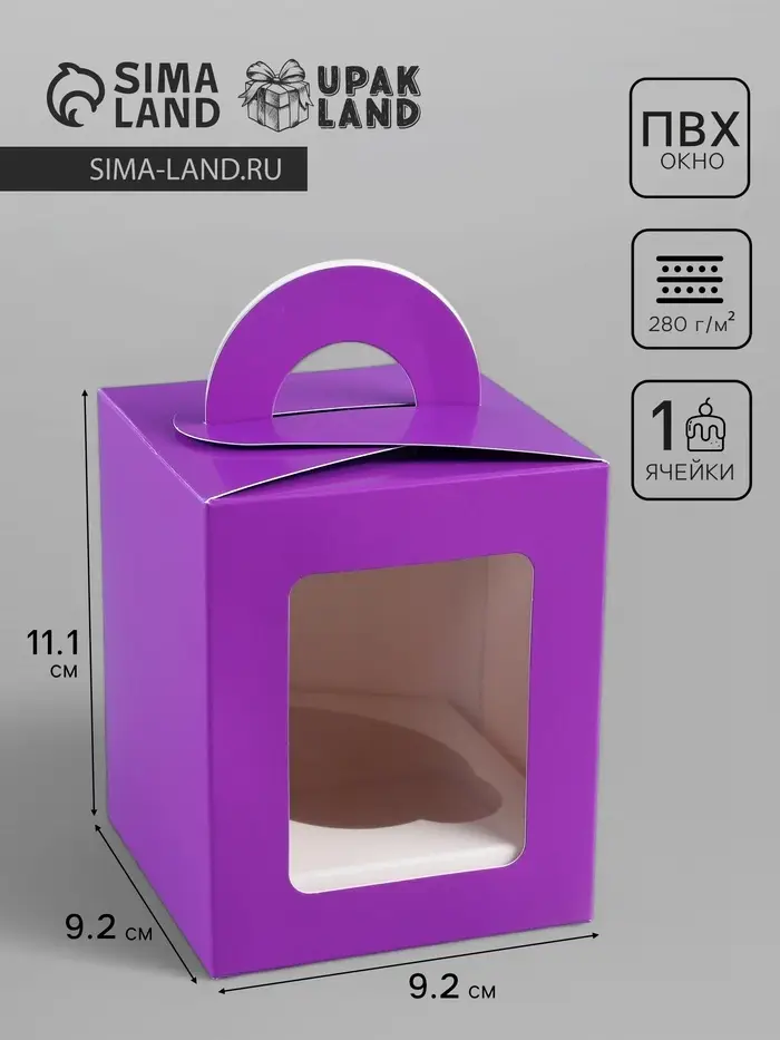 Коробка для 1 капкейк с окном, сиреневая, 9.2×9.2×11.1 см
