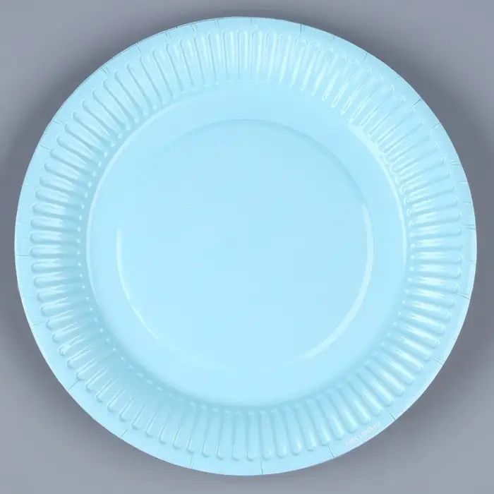 Тарелка одноразовая бумажная однотонная, голубая, 18 см