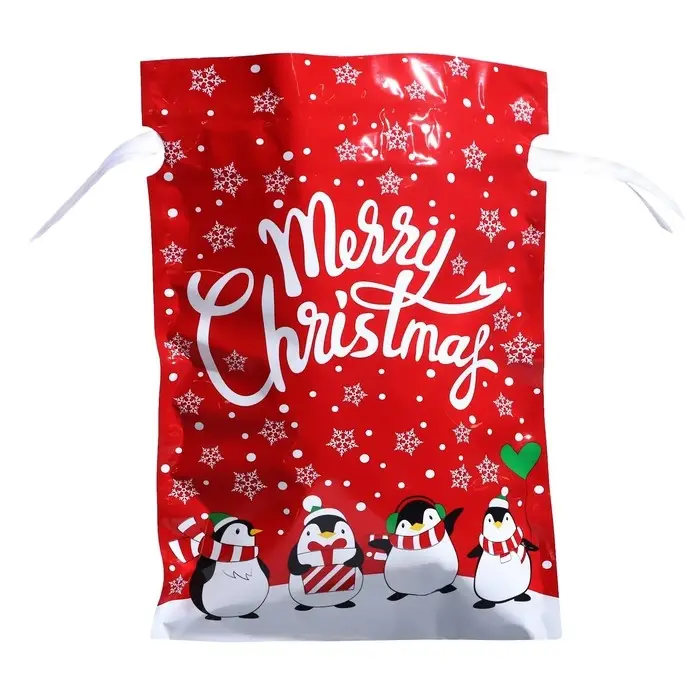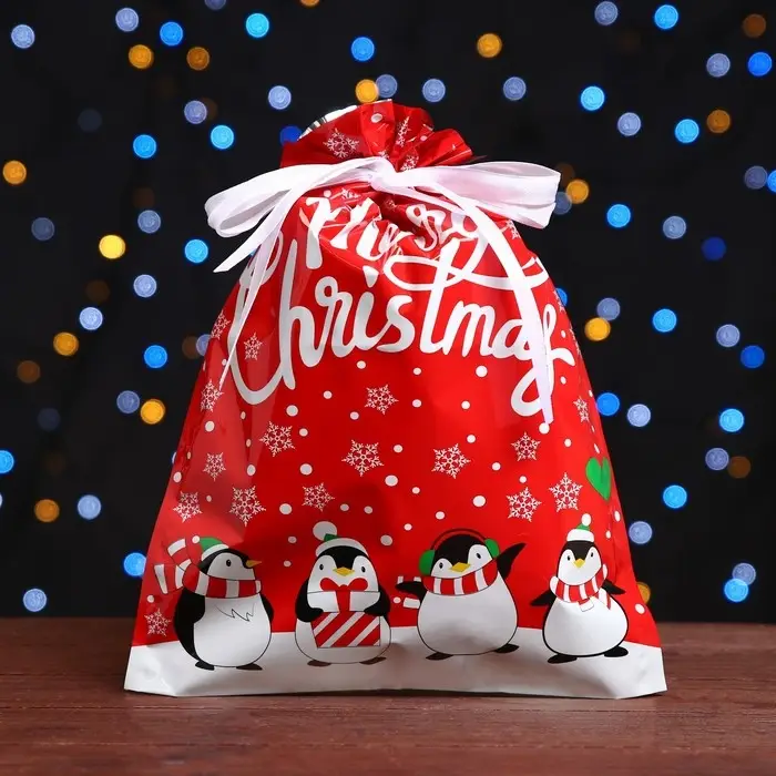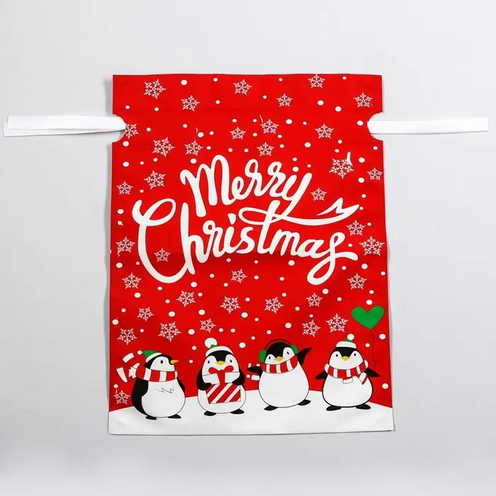 Новый год. Пакет подарочный с завязками, "Счастливый пингвин", 29х43 см.
