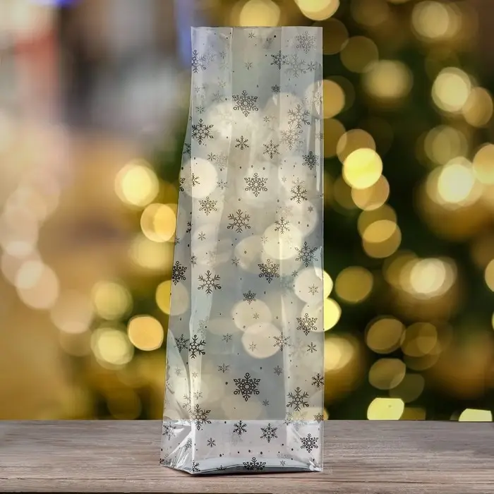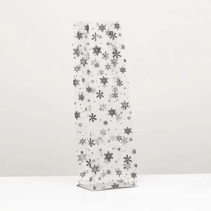 Пакет подарочный новогодний с жёстким дном 11×17×55 Серебристый «Снежинки»