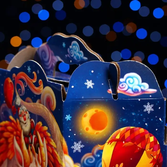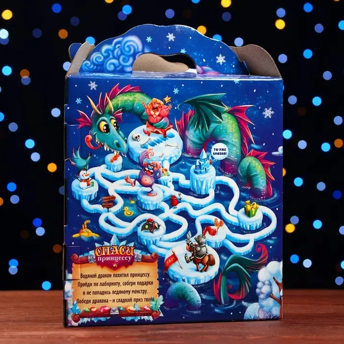 Коробка выполнена из качественных материалов, которые обеспечивают сохранность содержимого. Она имеет яркий и красочный дизайн, который отражает атмосферу Нового года.