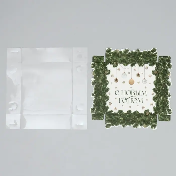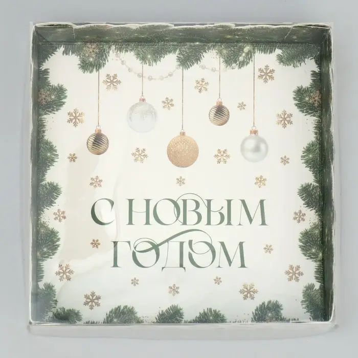 Коробка для макарун «С Новым годом», веточки, 12 х 12 х 3.5 см