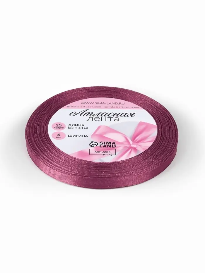 Лента атласная, 6 мм, 23±1 м, сливовая №171