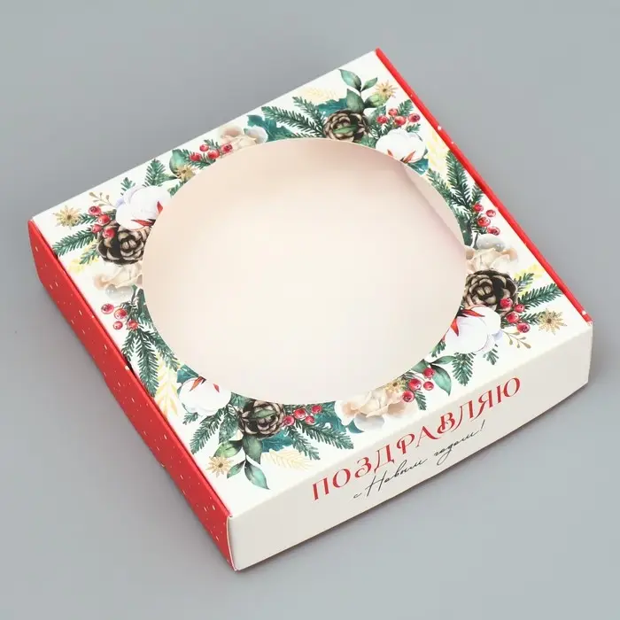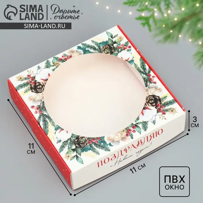 Коробка для макарун с низкими бортами «Венок», 11×11×3 см