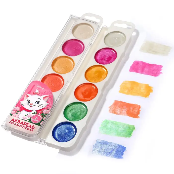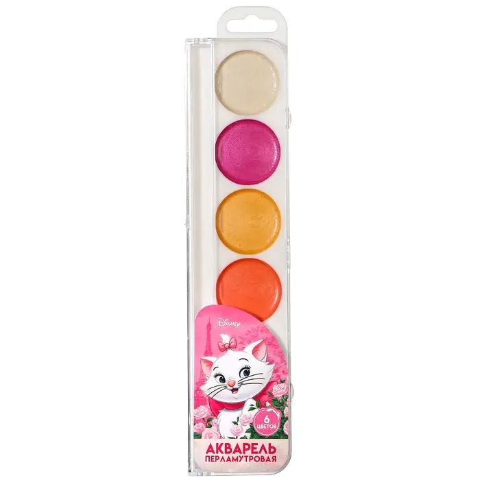 Акварель перламутровая «Кошечка Мари», 6 цветов, без кисти