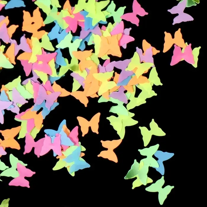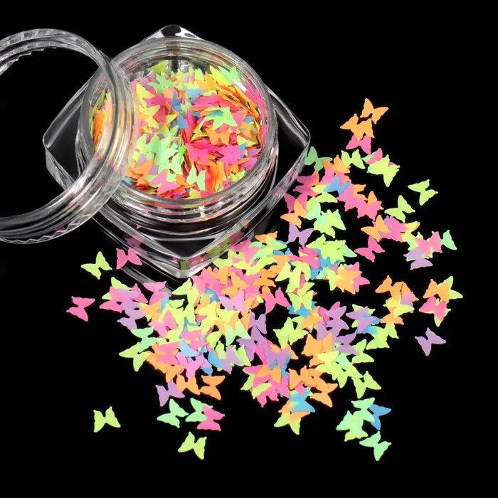Пайетки для декора ногтей, 6 ячеек, разноразмерные, светятся в темноте, разноцветные