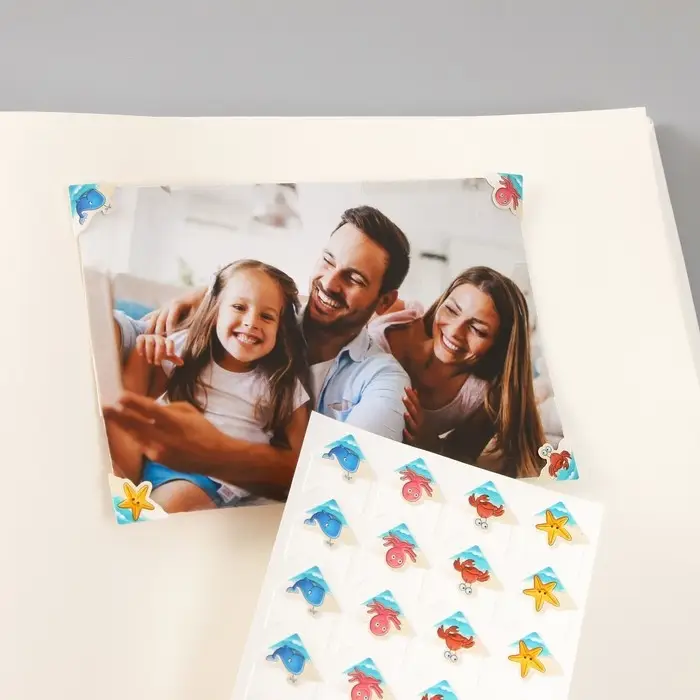 Набор уголков с кармашком для фотографий 24 уголка "Морские обитатели" 12,5х9 см