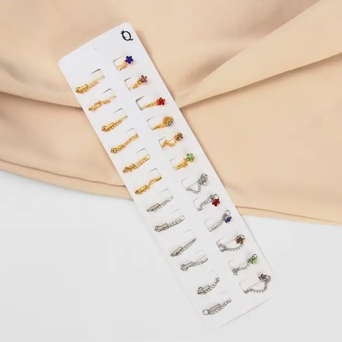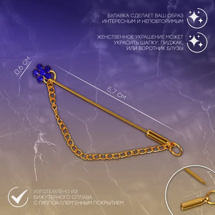Булавка «Цветок» мини с цепочкой, МИКС, 5.7 см (неделимая фасовка 12 шт., цена за шт.)