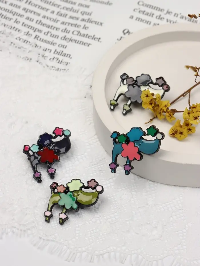 Брошь «Собачка» пудель, цвет МИКС в чёрном металле (неделимая фасовка 12 шт., цена за шт.)