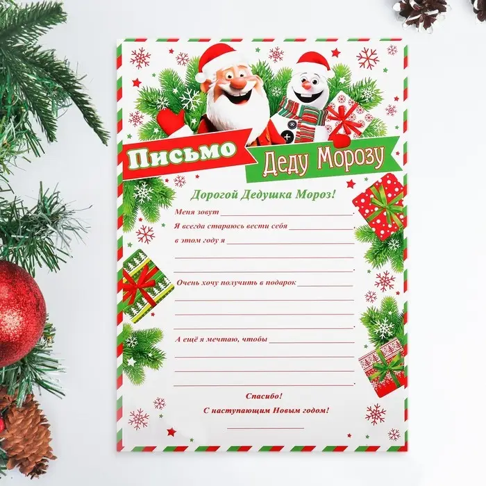 Письмо Деду Морозу «Снеговик», бумага, 21.5×30 см