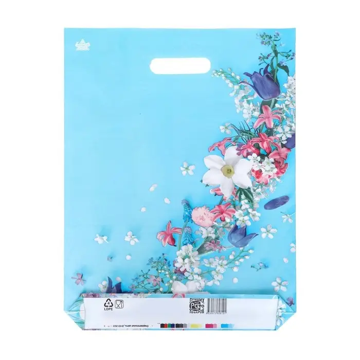Пакет «Цветы» полиэтиленовый, с вырубной ручкой, 38×45 см, 60 мкм