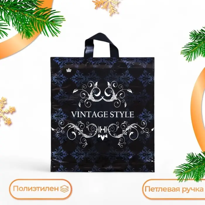 Пакет «Винтажный стиль», полиэтиленовый с петлевой ручкой, 44×40 см, 70 мкм