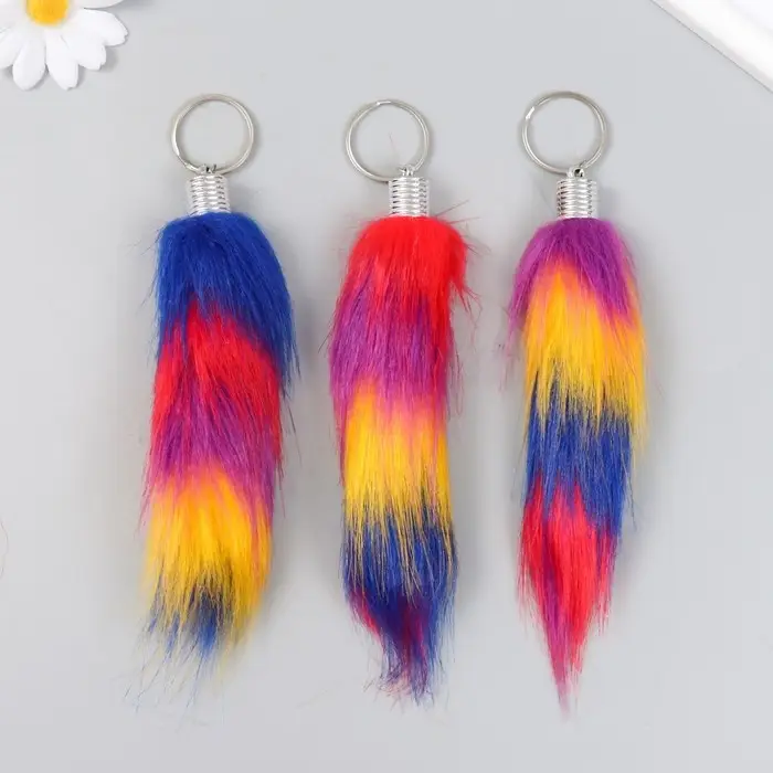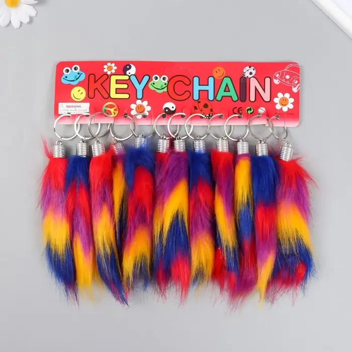 Пушистик на кольце "Хвост в полосочку" h=15 см, МИКС