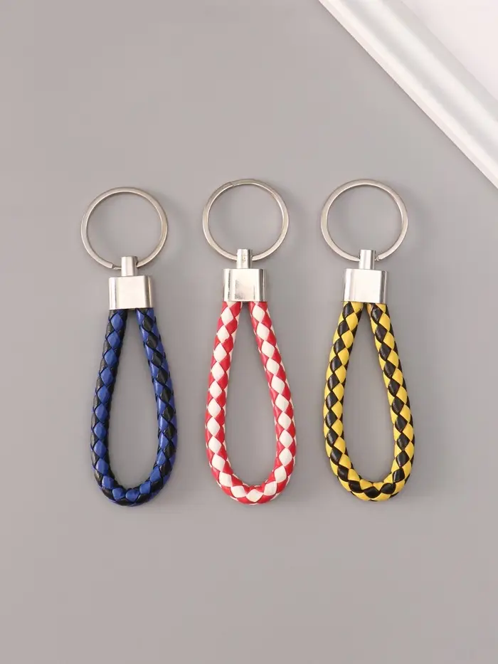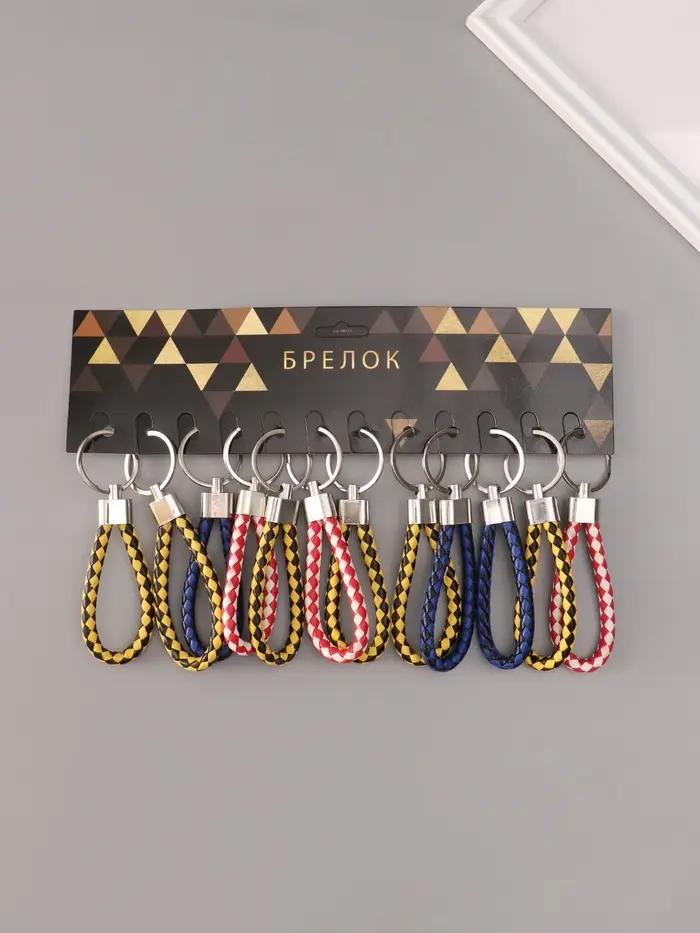 Брелок металл кожзам "Ремешок плетёнка" МИКС 8 см