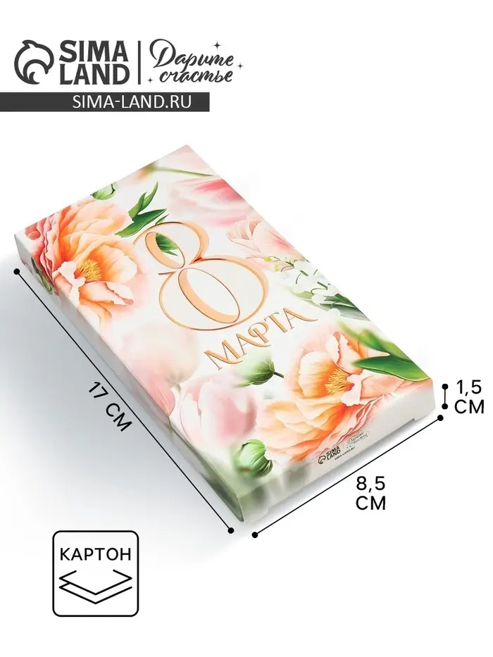 Коробка для шоколада, кондитерская упаковка «С 8 Марта!», 17.3 х 8.8 х 1.5 см