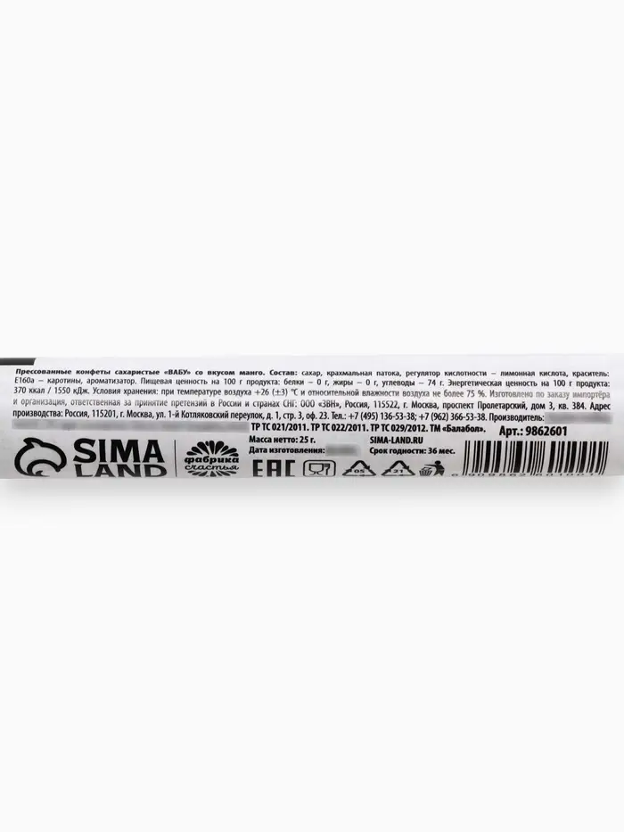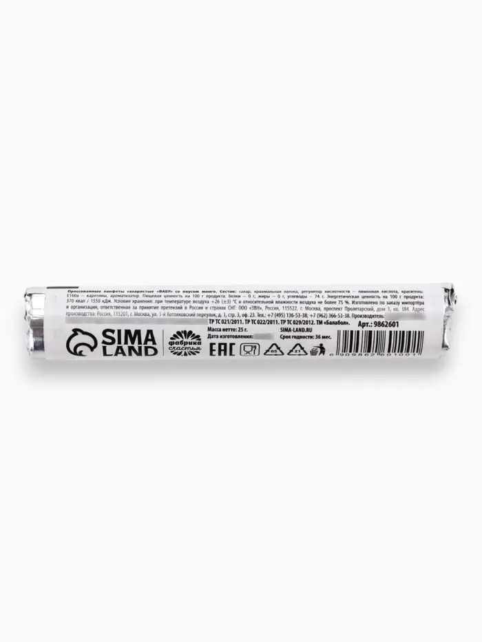 Состав: сахар, крахмальная патока, регулятор кислотности - лимонная кислота, краситель: Е160а - каротины, ароматизатор.