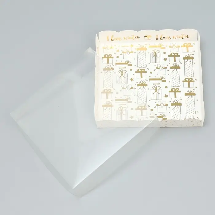 Коробка для кондитерских изделий с пластиковой крышкой I love winter, 15×15×3 см