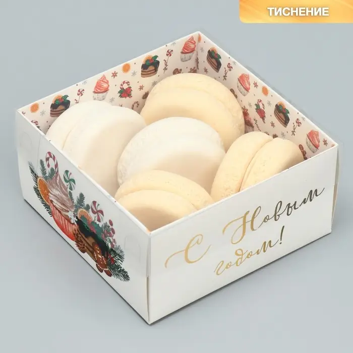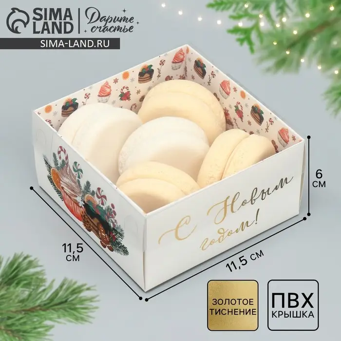 Коробка для кондитерских изделий с пластиковой крышкой «С Новым годом», 12 х 6 х 11.5 см