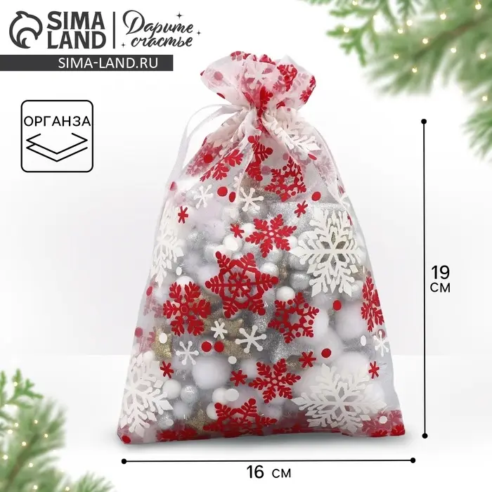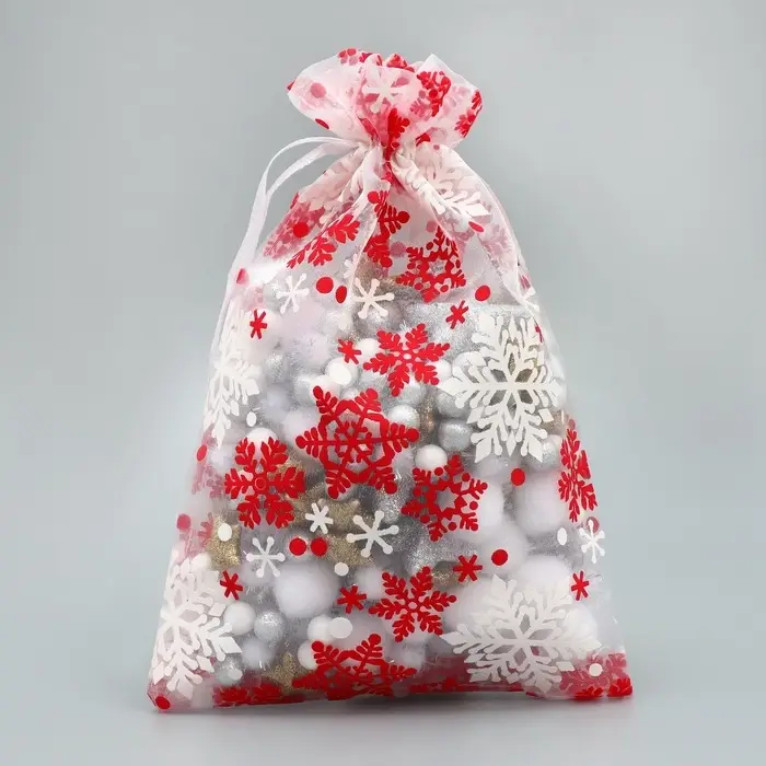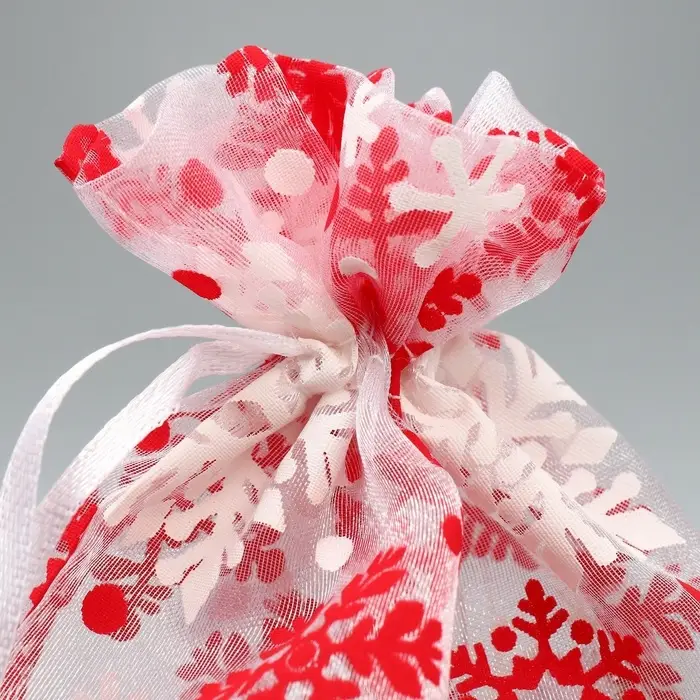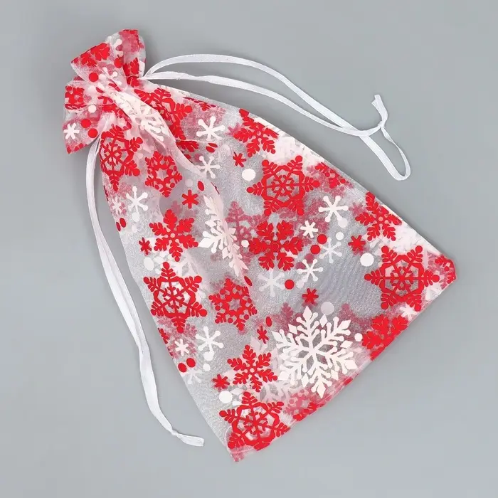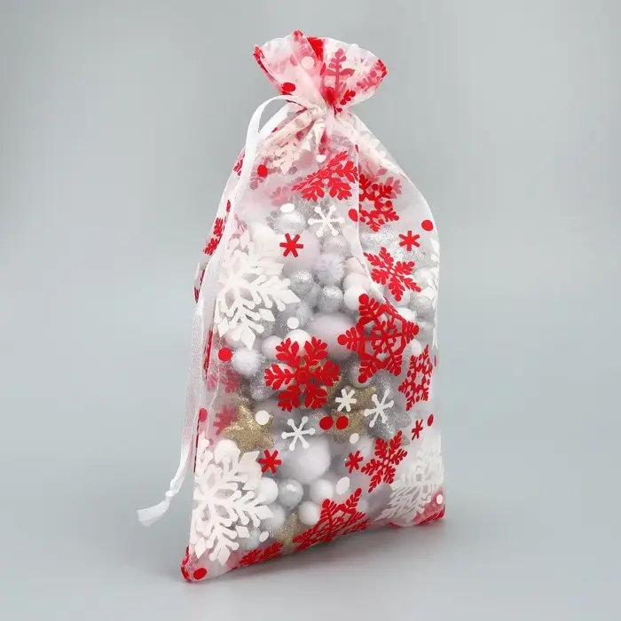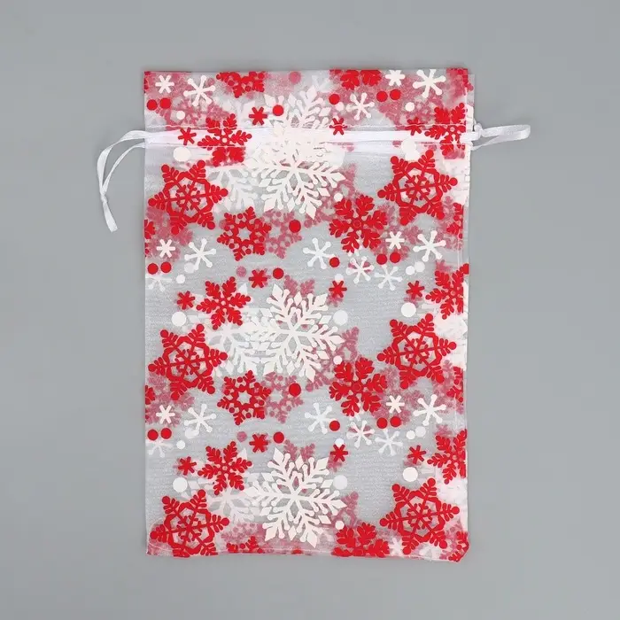 Мешочек подарочный органза «Новогодний танец», снежинки, 16 х 24 см +/- 1.5 см