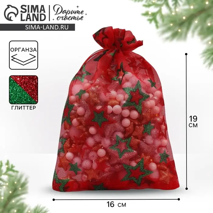 Мешочек подарочный органза «Звезда», 16 х 24 см +/- 1.5 см