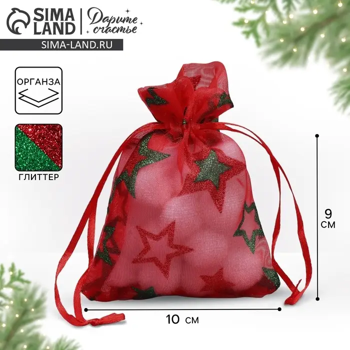 Мешочек подарочный органза «Звездочки», 10 х 12 см +/- 1.5 см
