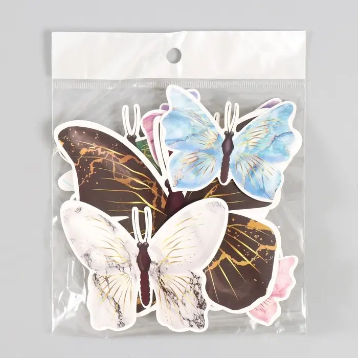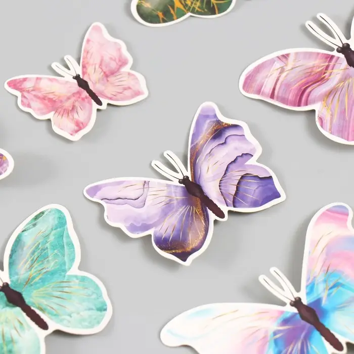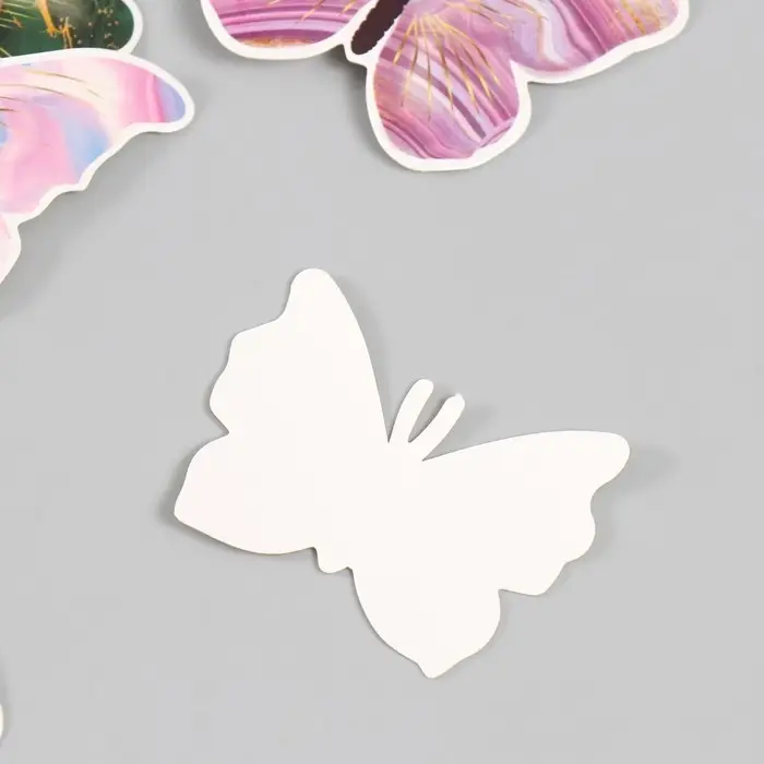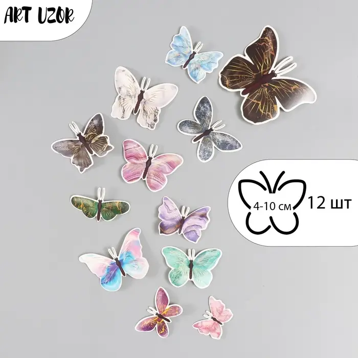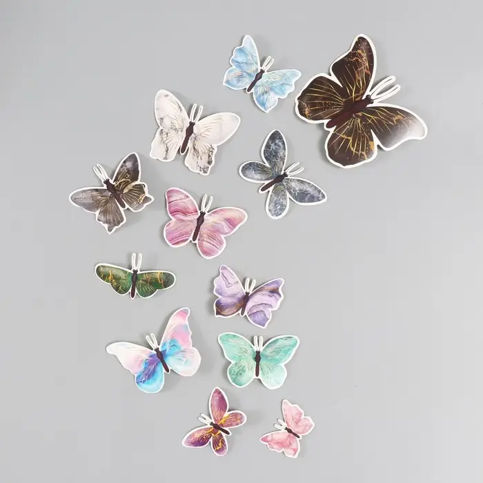 Бабочки картон "Мрамор с золотом" набор 12 шт h=4-10 см