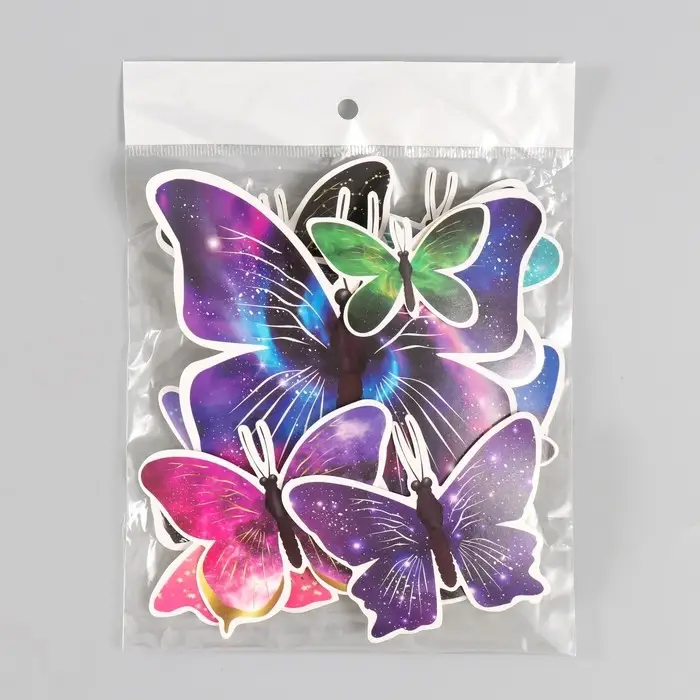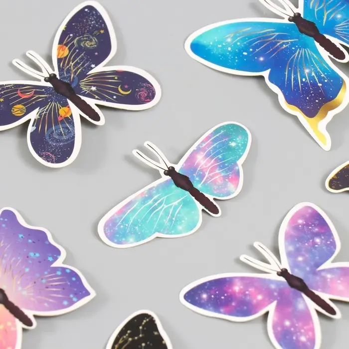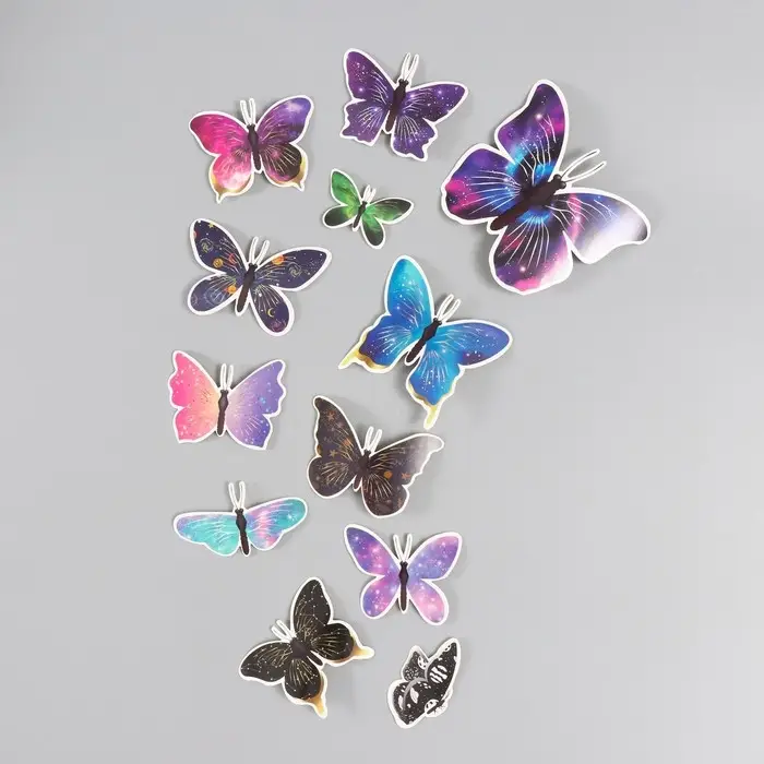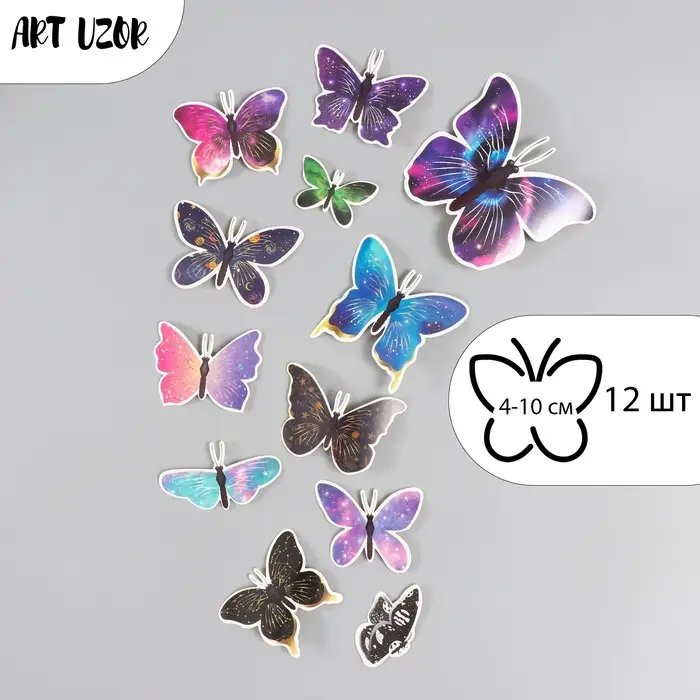 Бабочки картон "Космос" набор 12 шт h=4-10 см