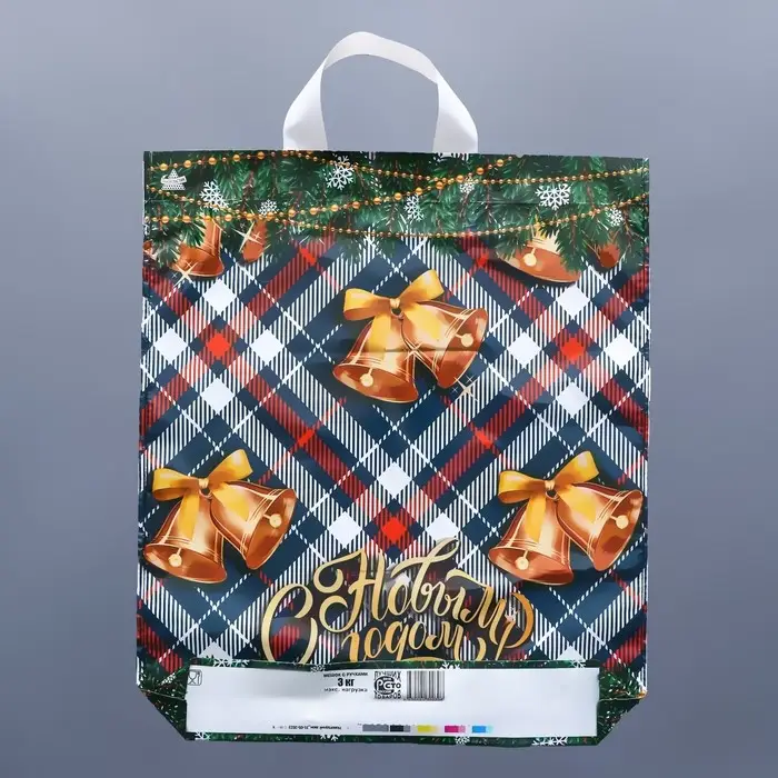 Пакет «Новогодний звон», полиэтиленовый с петлевой ручкой, 42×38 см