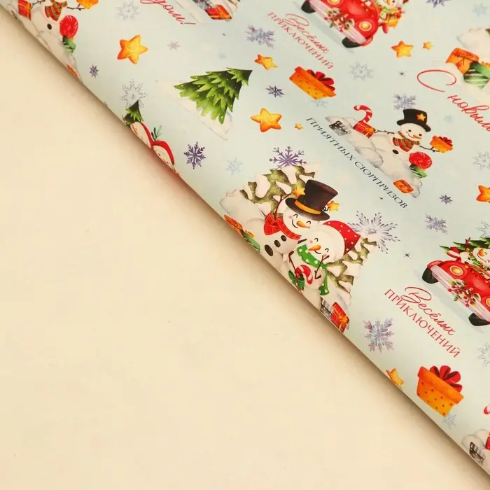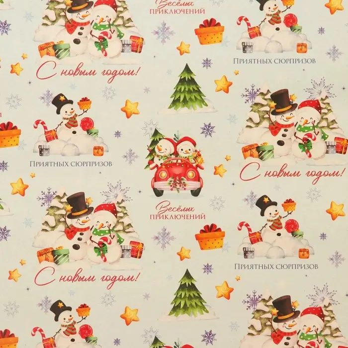 Бумага упаковочная новогодняя крафт белый «Хоровод», 50×70 см