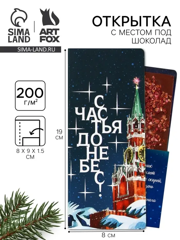 Открытка с местом для шоколадки «Новый год: Счастья до небес»