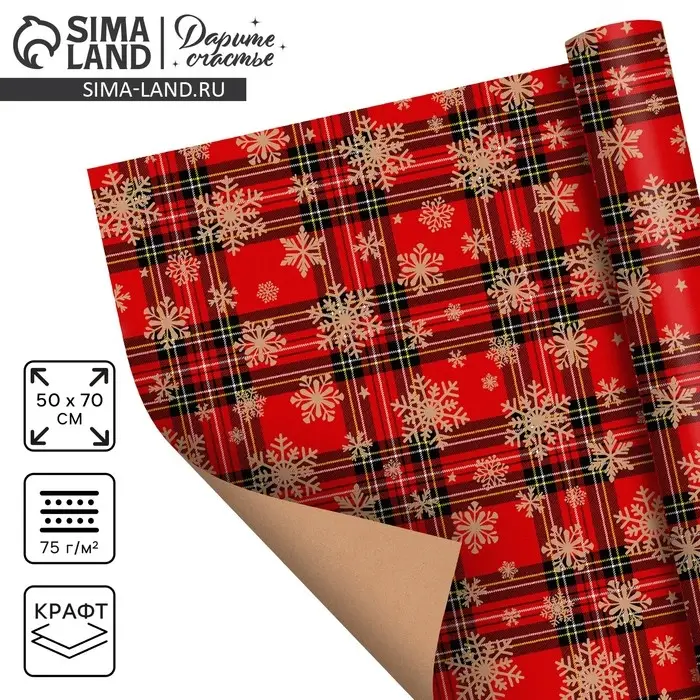 Бумага упаковочная крафтовая «Новогодняя», 50 х 70 см