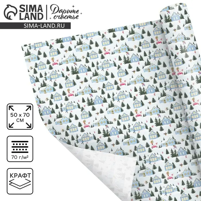 Бумага упаковочная крафтовая «Новогоднее утро», 50 х 70 см
