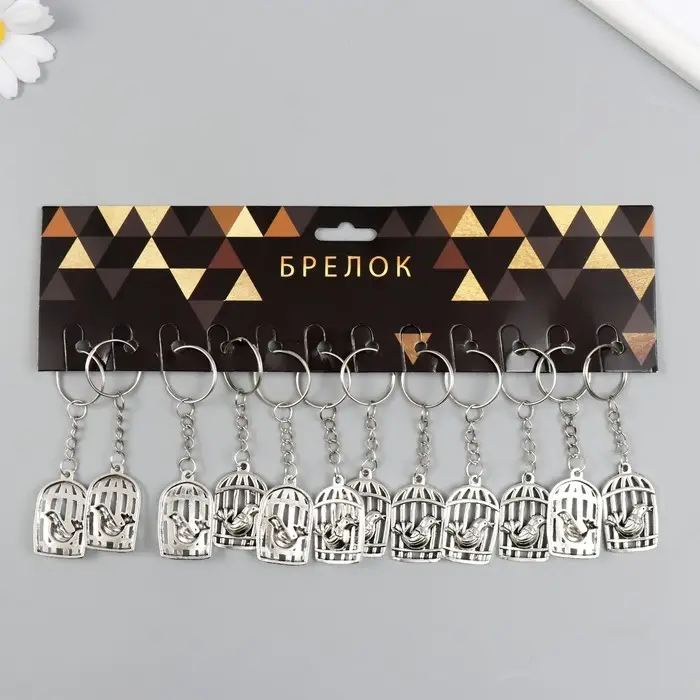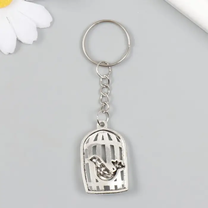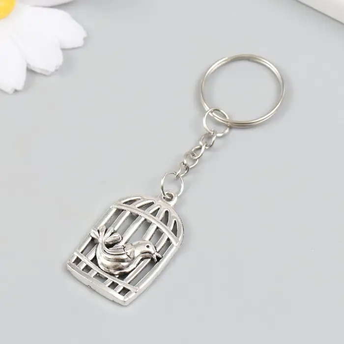 Брелок металл "Птица у клетки" серебро 2,2х3,6 см