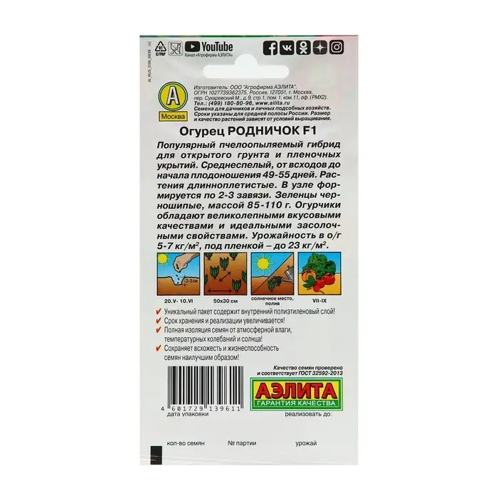 Семена Огурец "Родничок",10 шт F1