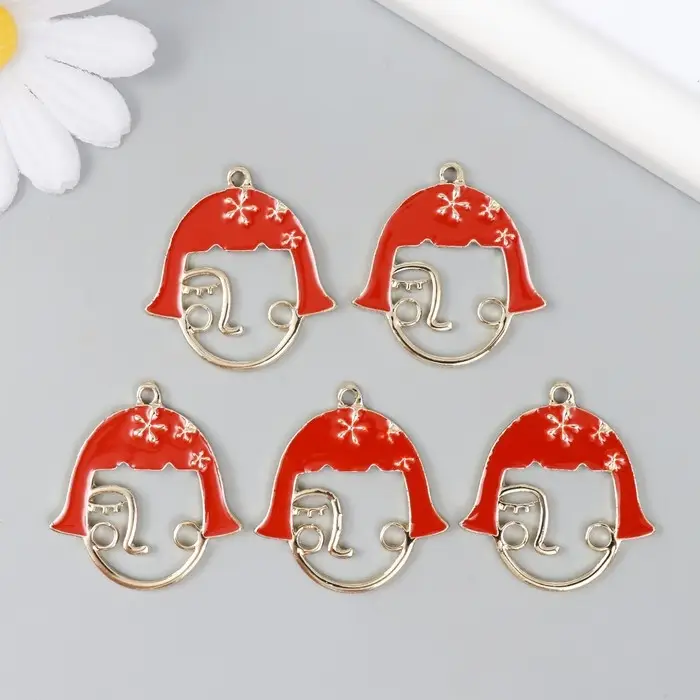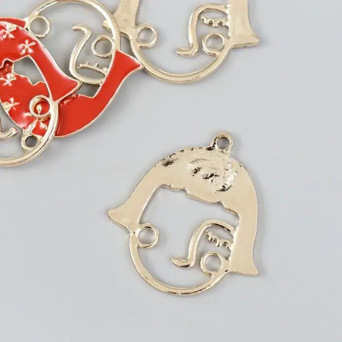 Декор для творчества металл, эмаль "Портрет девушки. Абстракция" оранж, золото 3,1х3,8 см