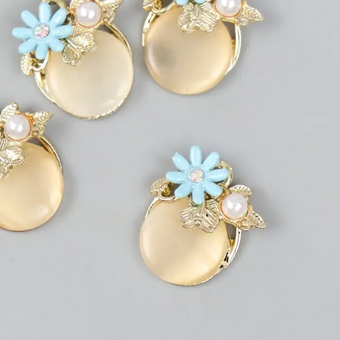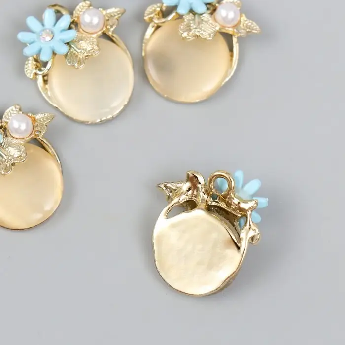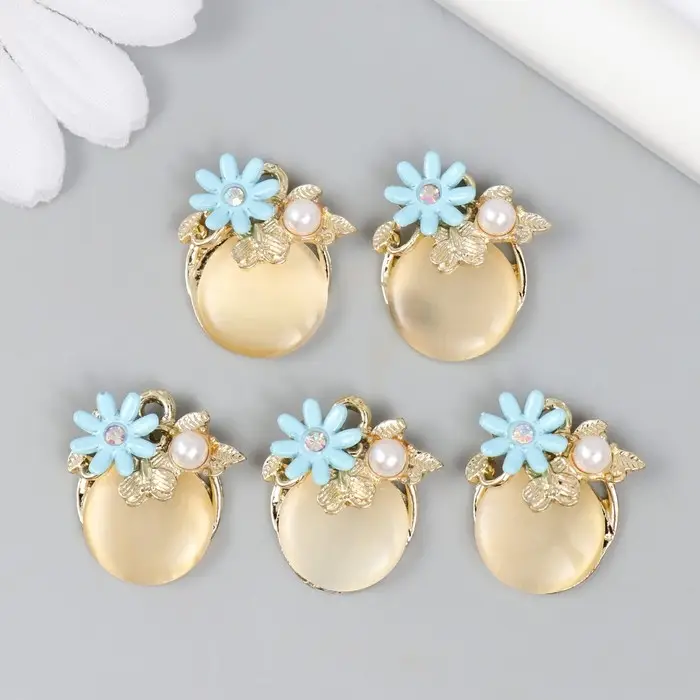 Декор для творчества металл "Кошачий глаз с незабудкой" жемчужина, золото 0,8х2х2,1 см